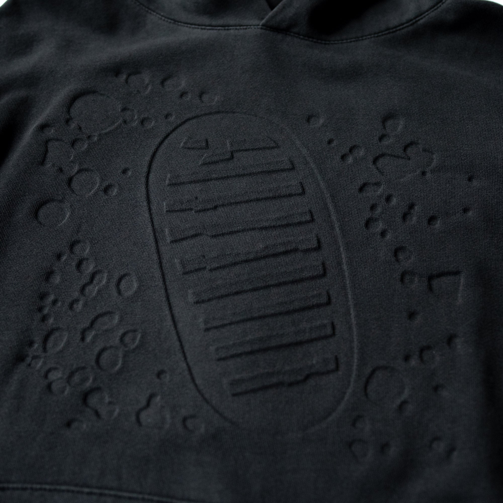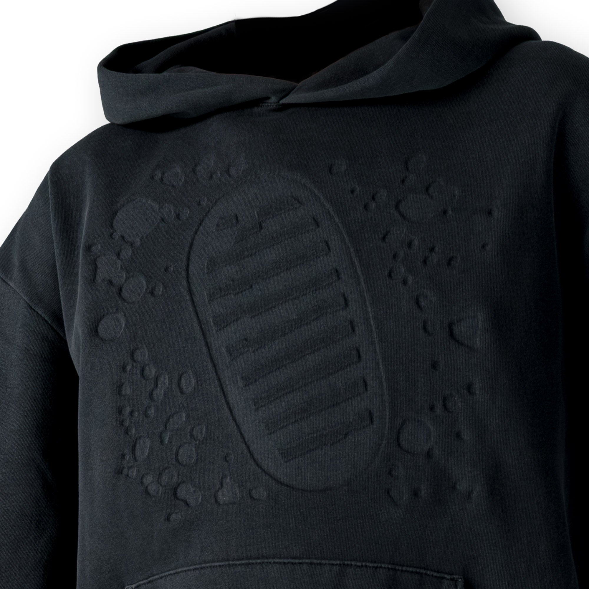 Inspired by the iconic Apollo 11 bootprint on the Moon, we set out to get as close to the real thing as possible. This was no small step, but we did it. Meet our lunar bootprint hoodie with a true 3D imprint you can both see and feel.